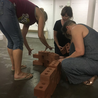 The first attempt at threading the bricks onto the steel rods failed. It took the group of ten artists and volunteers at least three tries before they collectively established the best way to thread each brick through the rods. Once they found this rhythm, the team was able to finish ‘threading’ the second half of the installation in less than twenty minutes. This part of the process was both delicate and intense. The group celebrated with prosecco, and expressed their pride and gratitude over the culmination of their work. The exhibition would open just two weeks later.